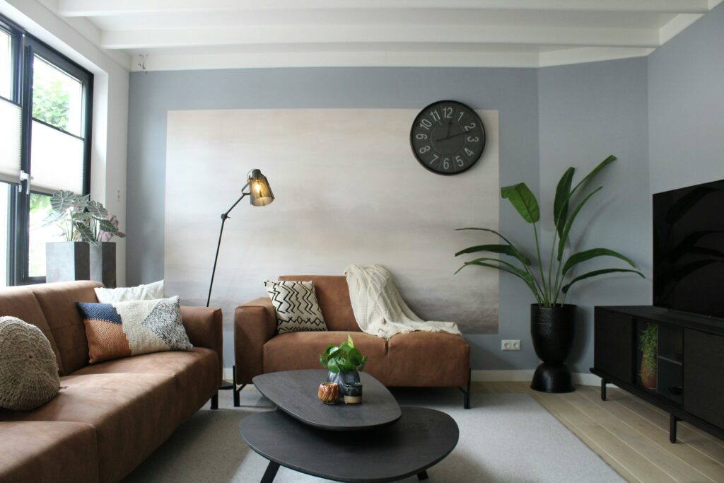 Dunkle Möbel verschlucken Licht und machen Räume schwerer. Ein dunkles Sofa vor einer dunklen Wand – das zieht den Raum optisch zusammen. Helle Holztöne wie Buche oder Eiche, ein helles Sofa in Beige oder Greige, das atmet.